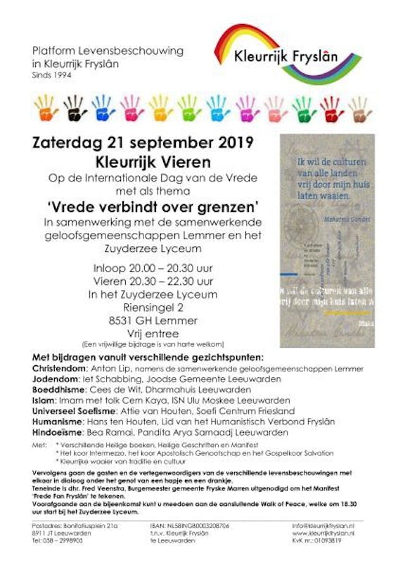 Wandel mee met de Walk of Peace door Lemmer. Aansluitend vindt de Kleurrijk Viering plaats.