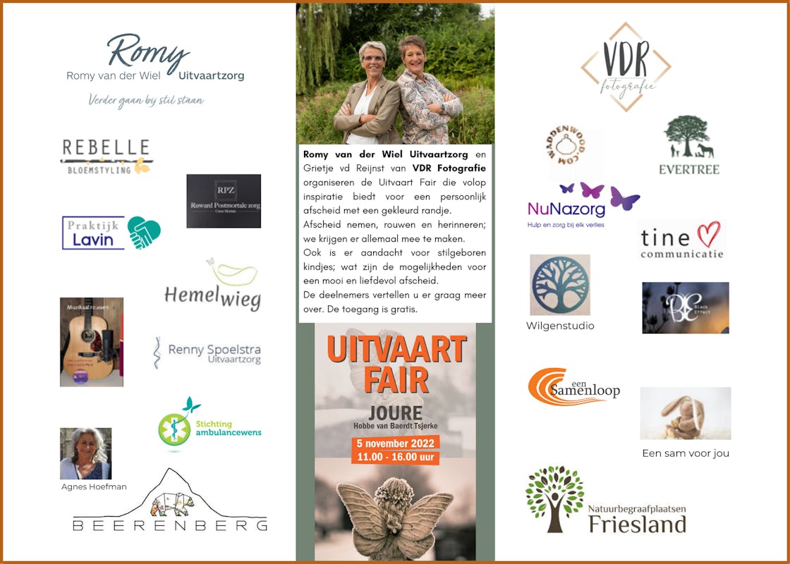 Op zaterdag 5 november a.s. organiseren Romy van der Wiel Uitvaartzorg en Grietje van der Reijnst van VDR Fotografie voor de tweede keer een UITVAART FAIR.