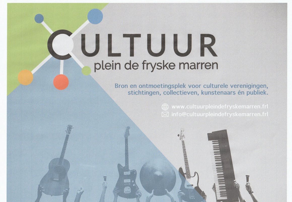Cultuurplein de Fryske Marren behartigt de belangen van personen en organinsaties,vereningingen en groepen in de sector Kunst en Cultuur. De website : www.cultuurpleindefryskemarren.frl is bedoeld om een digitale ontmoetingsplaats te zijn voor cultuuraanbieder en de burgers van de Gemeente De Frsyke Marren. Meer informatie :